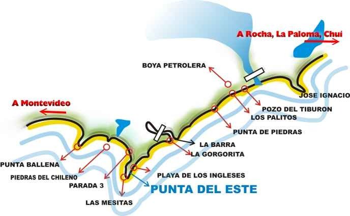 Luego de La Barra encontrará varios lugares con playas pequeñas entre las rocas que podrá hacer algunos lances y probar. Cabe indicar que la pesca en la costa de Punta del Este hasta José Ignacio es muy dinámica y depende, como ya escribimos antes, de las corrientes, vientos y marejadas.